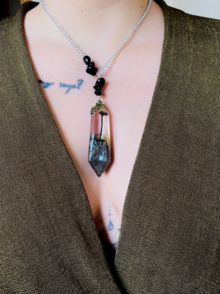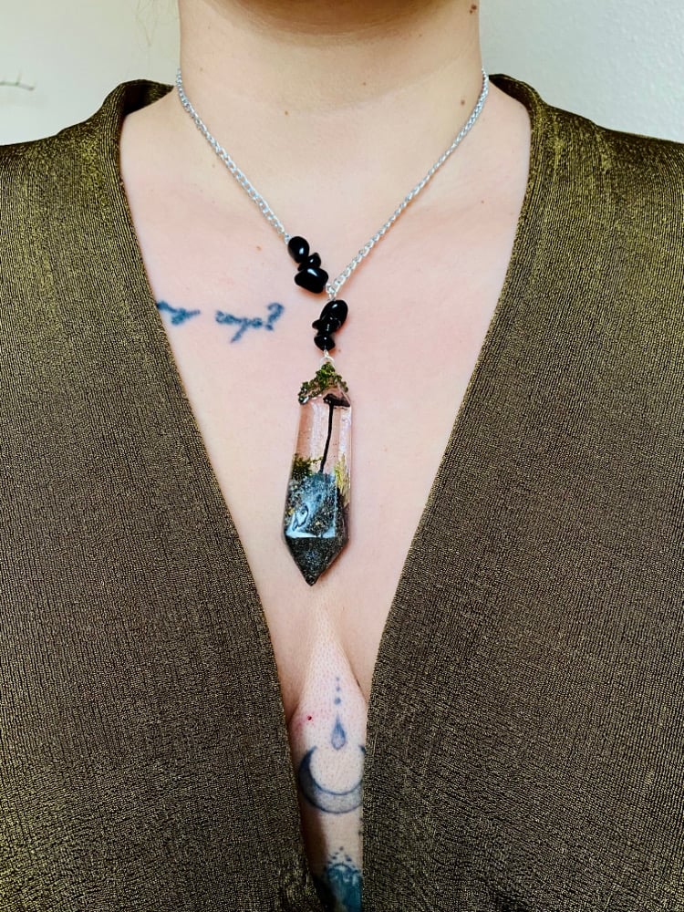 🍄🌿Mushroom Terranium Obsidian Crystal Amulet 🌿🍄Large