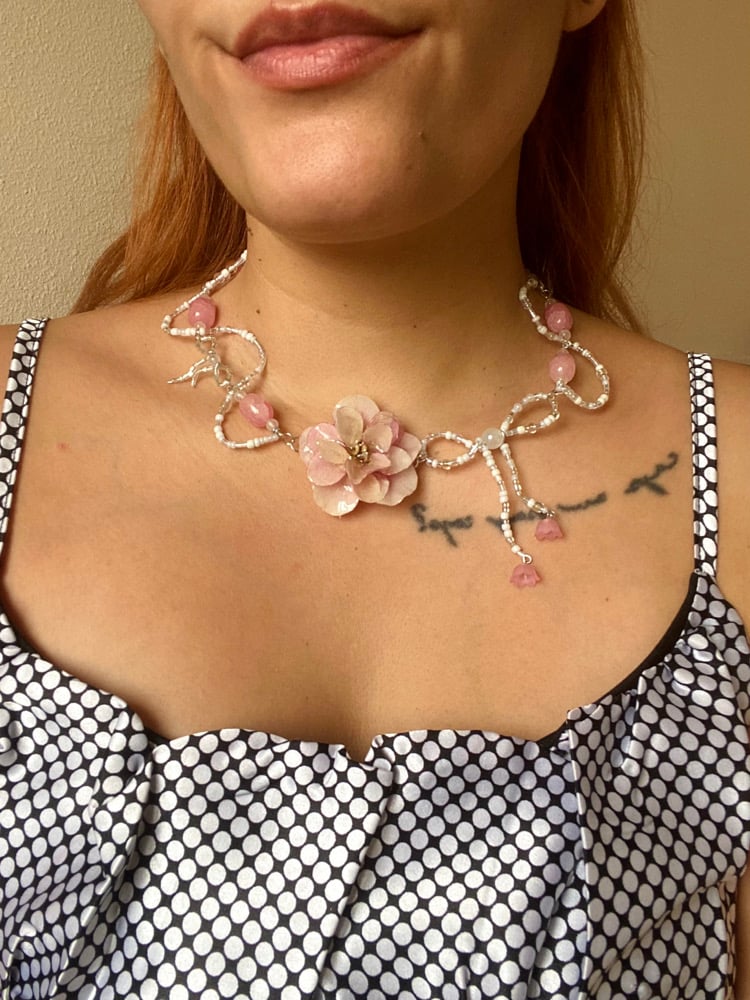 🎀🌸Coquette Bow Rose Necklace🌸🎀 Rose Quartz
