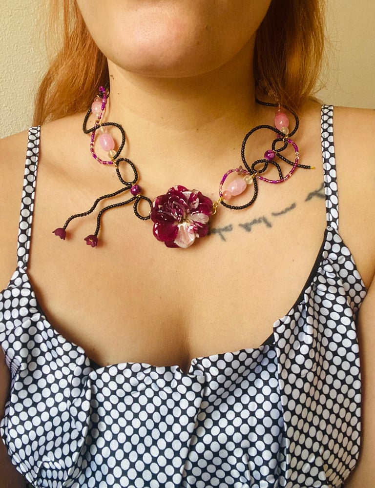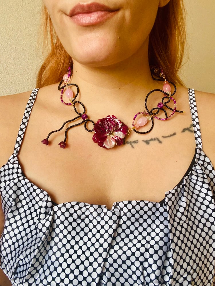 🥀🖤Femme Fatale Rose Choker🖤🥀 Rose Quartz